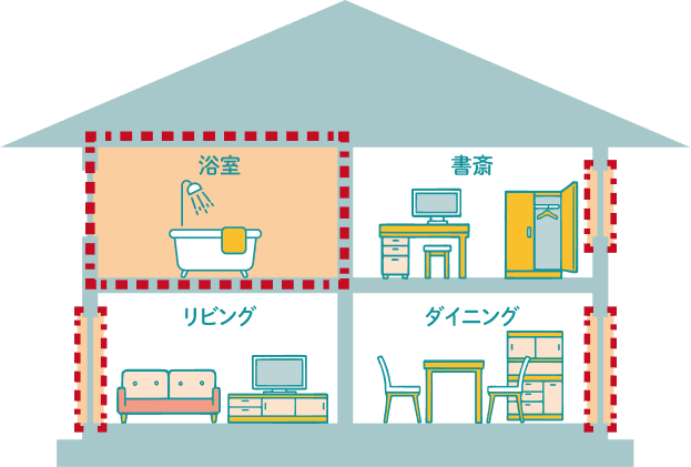 - 浴室に面する窓や躯体の断熱施工や、断熱タイプのユニットバスに交換